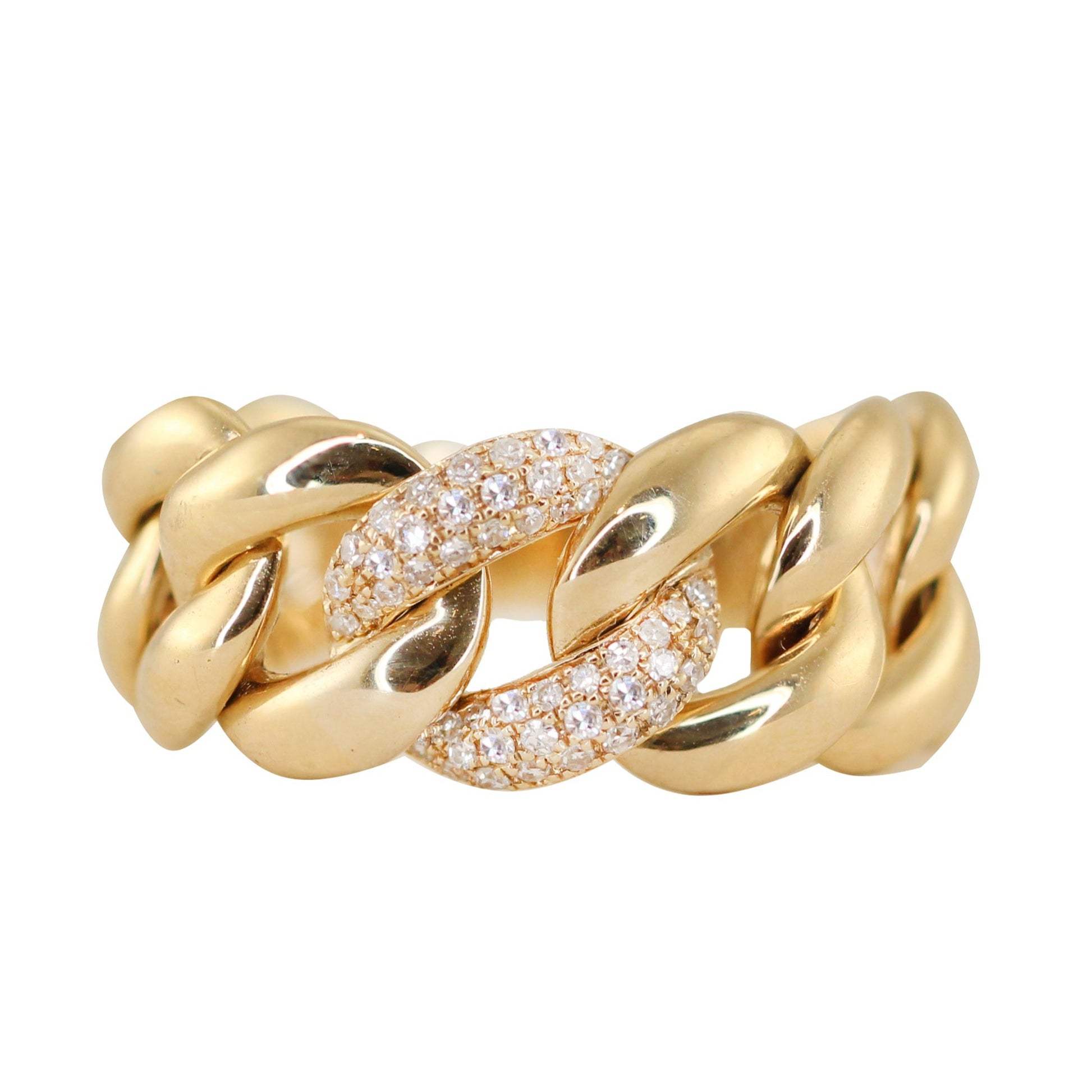 14kt gold large cuban diamond link ring