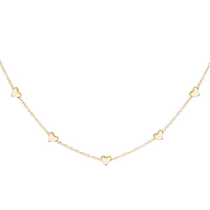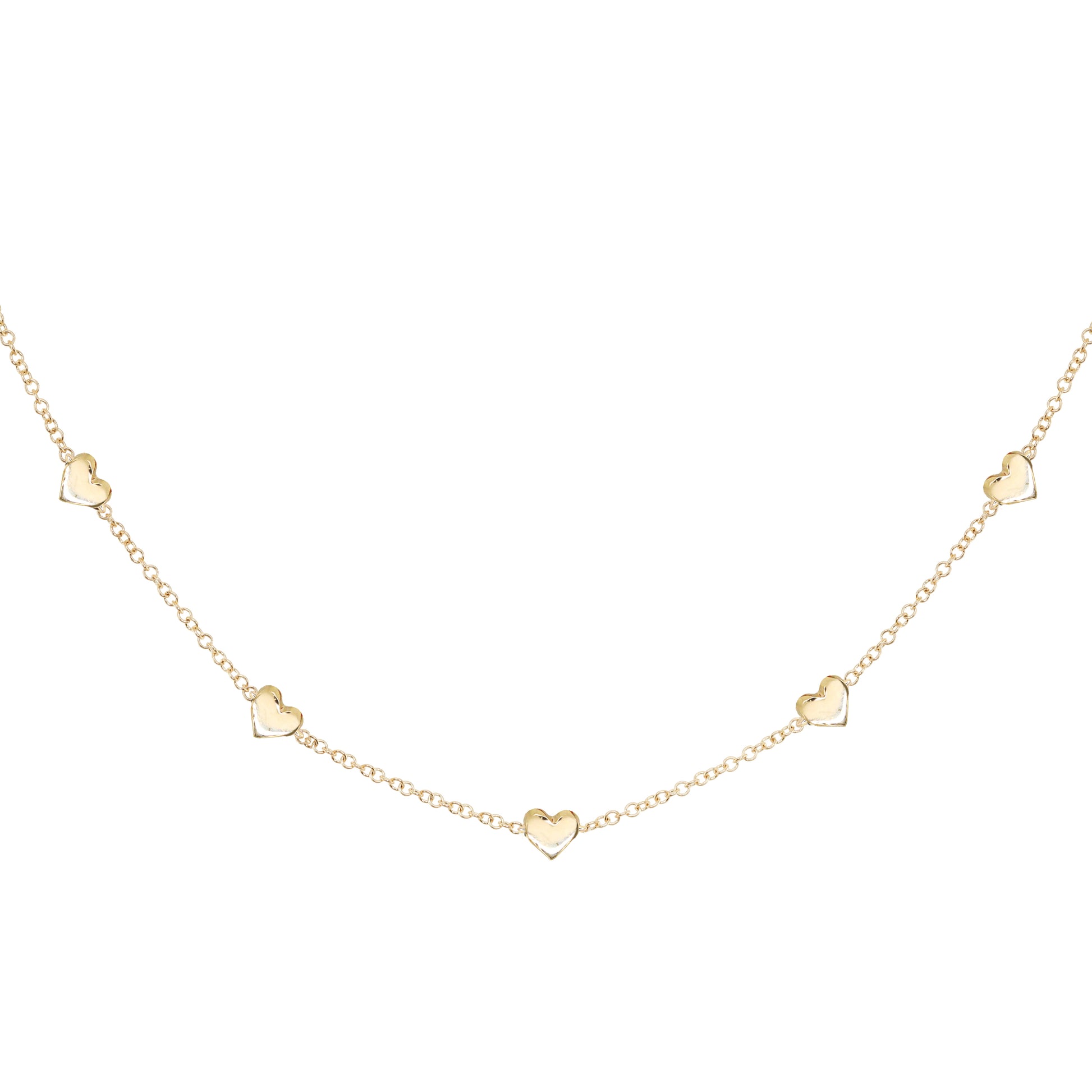 14kt gold row of hearts choker necklace on adjustable 14 - 16 inch chain