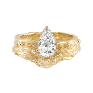 14kt gold teardrop diamond vine ring