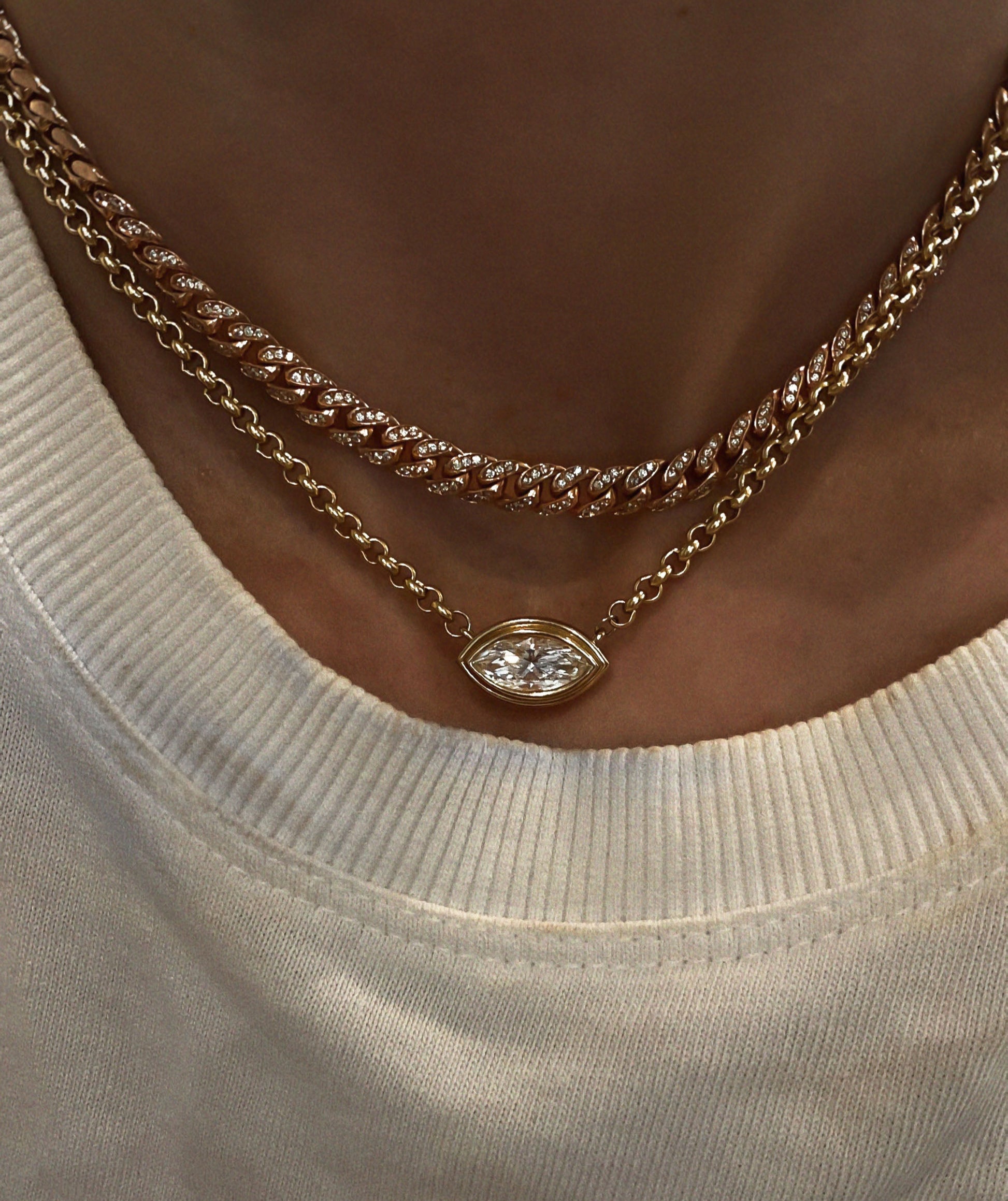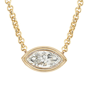 14kt gold two step marquise diamond bezel necklace on adjustable 15 - 16 inch chain