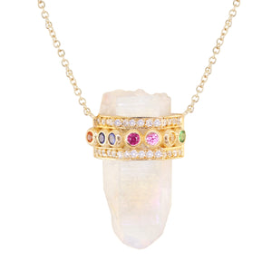 14kt gold and diamond rainbow sapphire quartz crystal bar necklace
